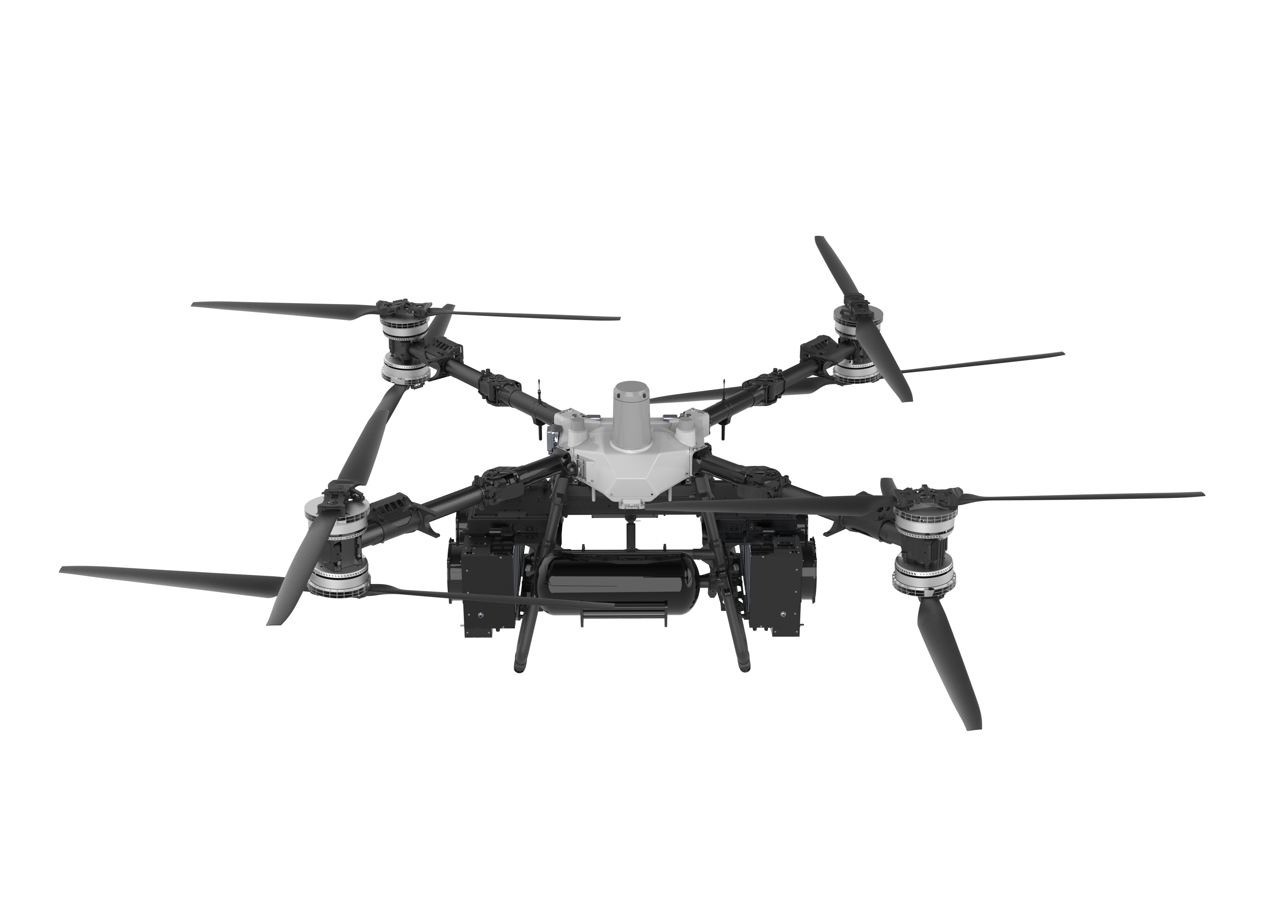FC100氫電版無人機原型機為大疆FC100,是一款具備大載重、長航時的運載機,同時支持兩種供電模式,鋰電模式下最大載重80千克,續航7分鐘;氫電模式下最大載重40千克,續航可達50分鐘。